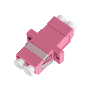 Optical fiber adapters are designed for connecting patch cords and cables terminated with the same type of connector. Adapters are installed in removable panels in optical patch panels and provide a reliable connection, as well as stable parameters of detachable connection. The LC adapter is made of plastic of different colors for better visual identification of the adapter type. Magenta is used to connect the connectors with OM4 fiber type , and Aqua ones – with OM3 fiber yype. Mounting of LC type adapters to removable panels in optical crossways is carried out using metal latches and screws. Centering bushings are made of ceramic for all optical connecting adapters intended for single-mode fiber. All adapters are equipped with plugs for protection against dirt and dust.